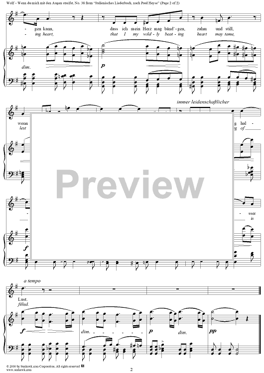 Digital Sheet Music for Italienisches Liederbuch, nach Paul Heyse, Part 2, No. 38 - Wenn du mich mit den Augen streifst und lachst by Hugo Wolf scored for Voice/Piano; id:265238