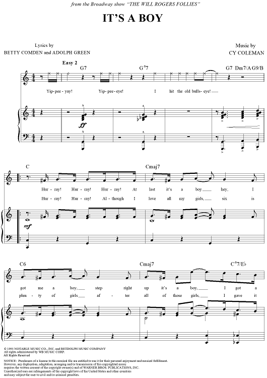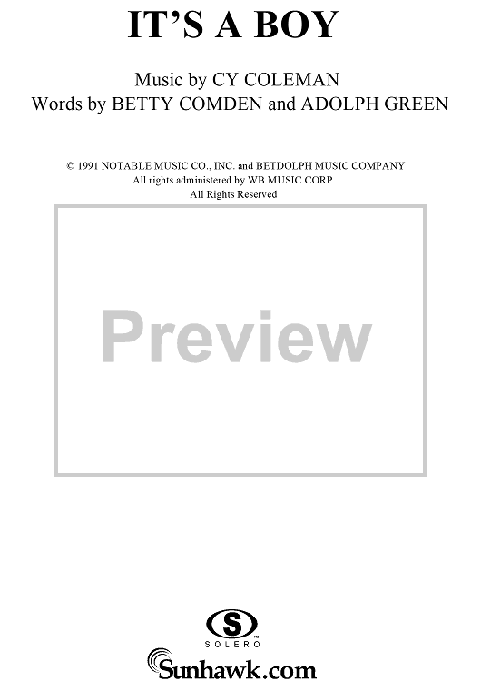 Digital Sheet Music for It's A Boy by Cy Coleman, Betty Comden, Adolph Green scored for Piano/Vocal/Chords; id:272333