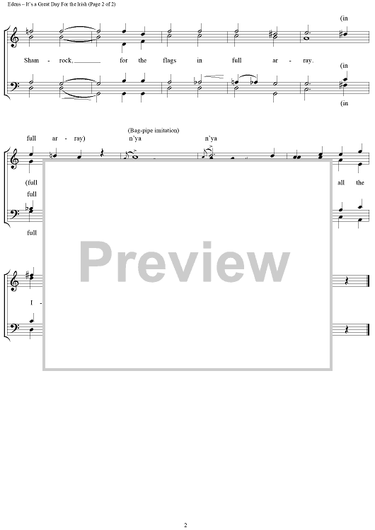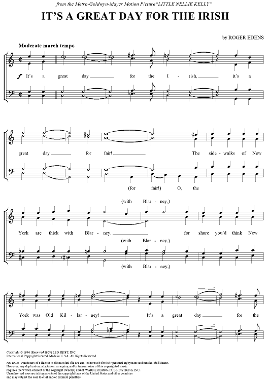 Digital Sheet Music for It's a Great Day for the Irish by Roger Edens scored for Barbershop Quartet; id:116190