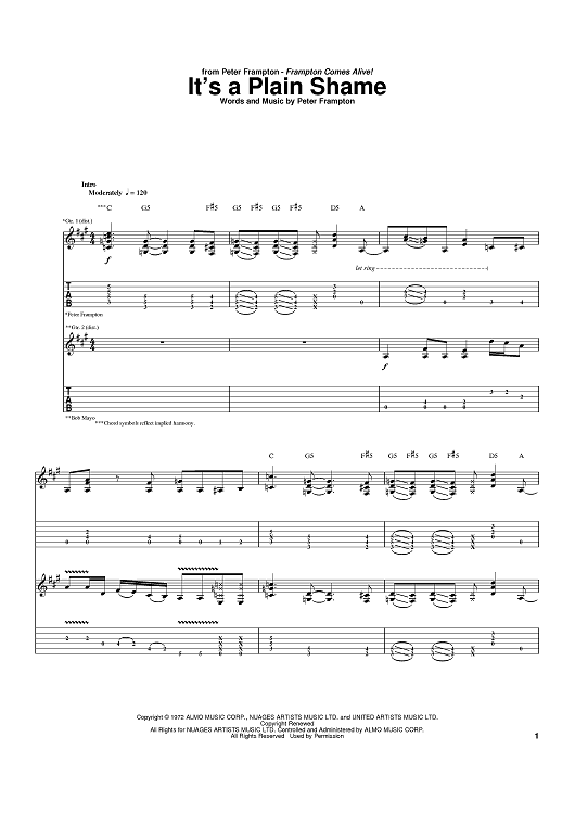 Digital Sheet Music for It's A Plain Shame by Peter Frampton scored for Guitar Tab; id:402676