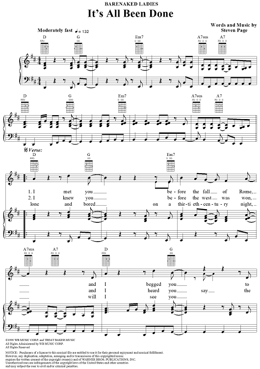 Digital Sheet Music for It's All Been Done by Steven Page, Barenaked Ladies scored for Piano/Vocal/Chords; id:111112