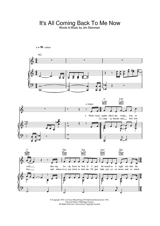 Digital Sheet Music for It's All Coming Back To Me Now by Celine Dion, Jim Steinman scored for Piano/Vocal/Chords; id:387830