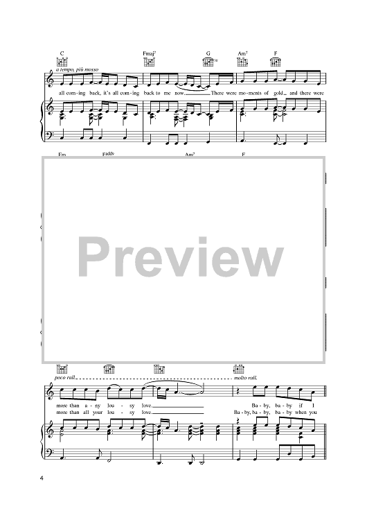 "It's All Coming Back To Me Now" Sheet Music by Celine Dion