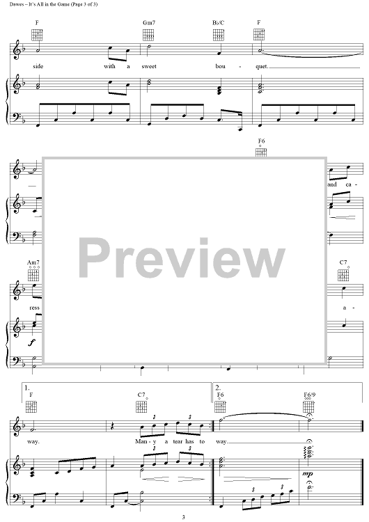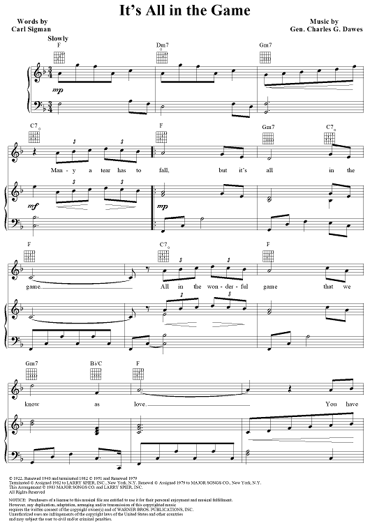 Digital Sheet Music for It's All In the Game by Carl Sigman, Four Tops, Charles G. Dawes, Tommy Edwards, Cliff Richard scored for Piano/Vocal/Chords; id:110698