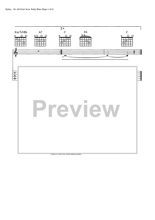 Digital Sheet Music for It's All Over Now, Baby Blue by Bob Dylan scored for Guitar Tab/Vocal/Chords; id:445437