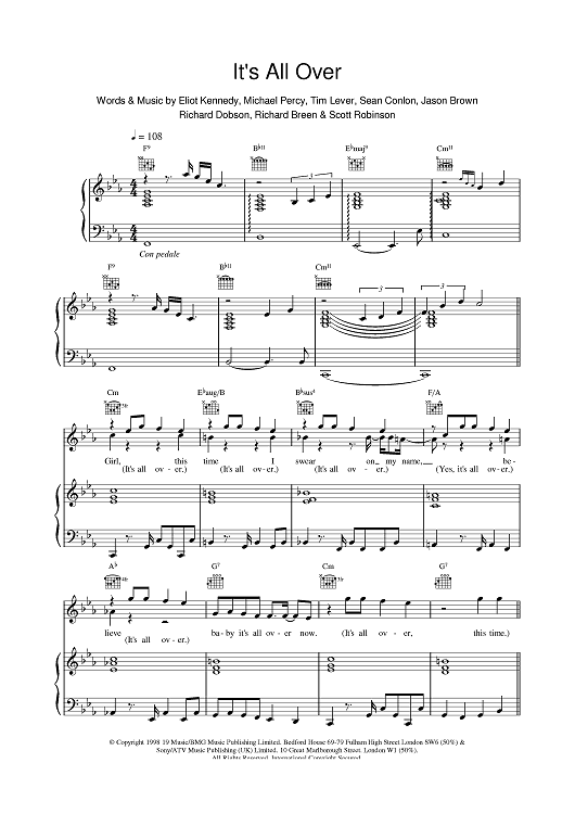 Digital Sheet Music for Its All Over by Mike Percy, Eliot Kennedy, Five, Lever,T scored for Piano/Vocal/Chords; id:379920