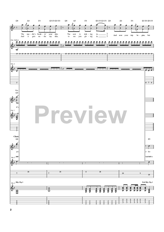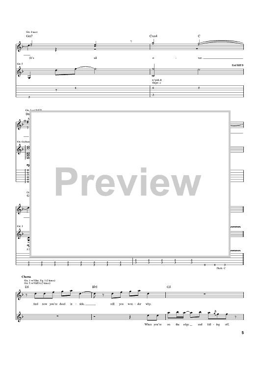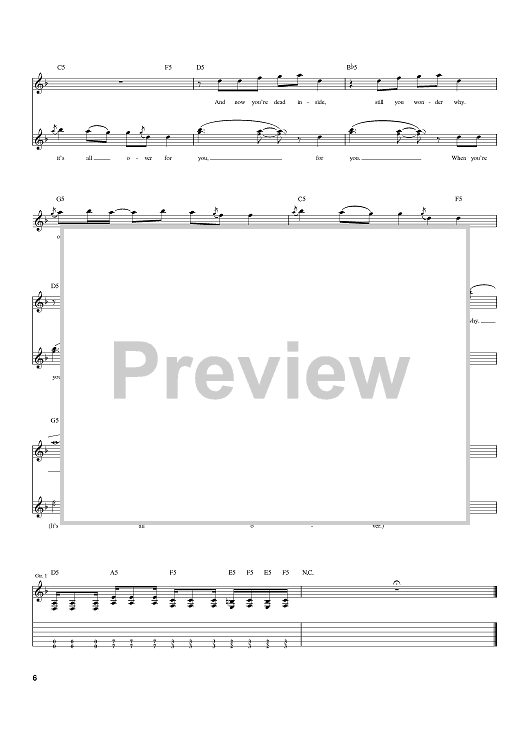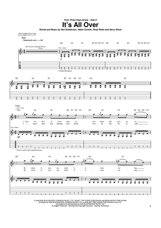 Digital Sheet Music for It's All Over by Neil Christopher Sanderson, Adam Gontier, Brad Walst, Three Days Grace, Barry Stock scored for Guitar Tab; id:394525