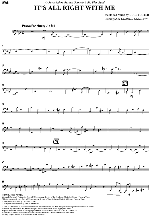 Digital Sheet Music for It's All Right With Me - Bass by Gordon Goodwin, Gordon Goodwin's Big Phat Band, Cole Porter scored for Jazz Ensemble; id:308773