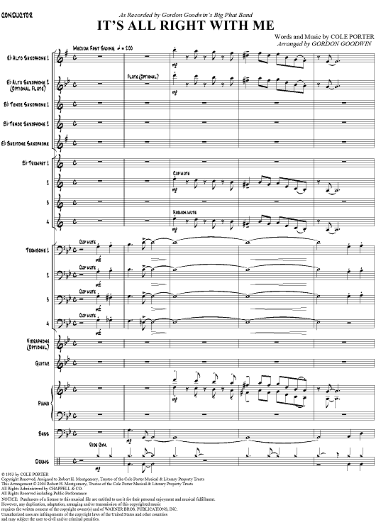"It's All Right With Me - Score" Sheet Music by Gordon Goodwin's Big Phat Band
