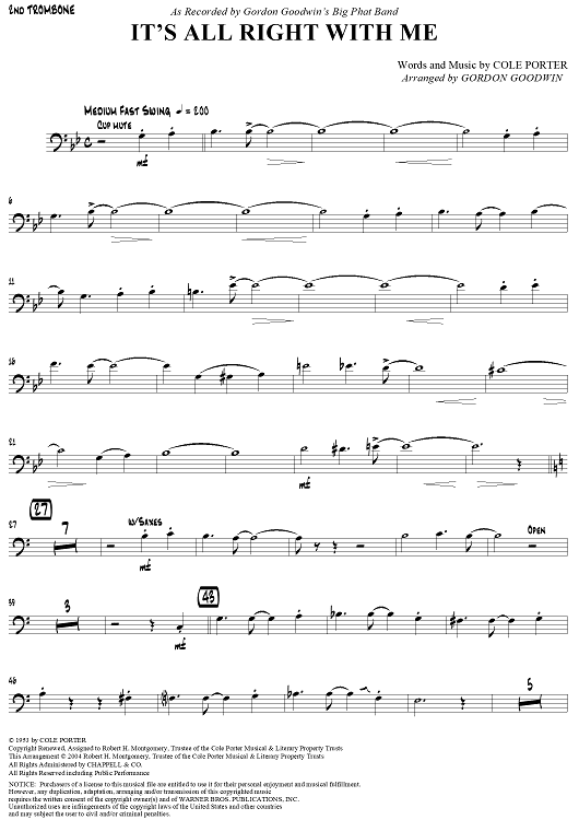 Digital Sheet Music for It's All Right With Me - Trombone 2 by Gordon Goodwin, Gordon Goodwin's Big Phat Band, Cole Porter scored for Jazz Ensemble; id:308767