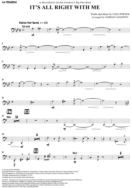 "It's All Right With Me - Trombone 4" Sheet Music by Gordon Goodwin's Big Phat Band