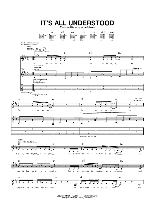 Digital Sheet Music for It's All Understood by Jack Johnson scored for Guitar Tab; id:370631