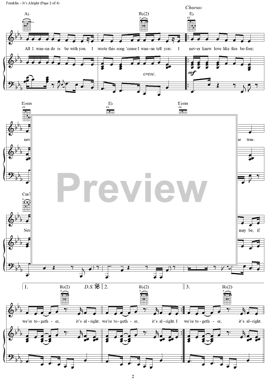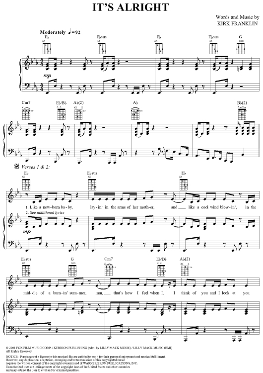 Digital Sheet Music for It's Alright by Trin-T-Tee, Kirk Franklin scored for Piano/Vocal/Chords; id:284904