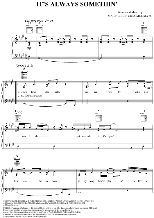Digital Sheet Music for It's Always Somethin' by Joe Diffie, Aimee Mayo, Marv Green scored for Piano/Vocal/Chords; id:225159