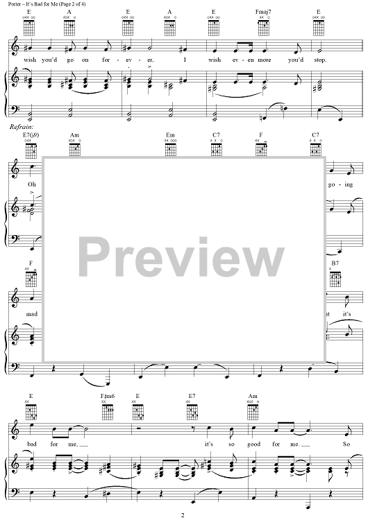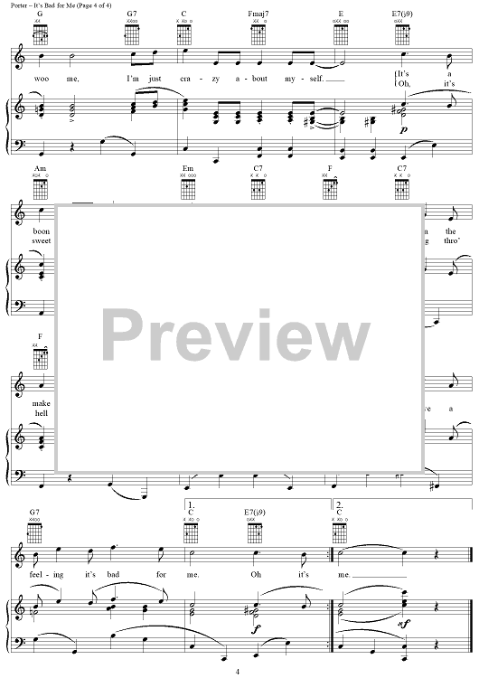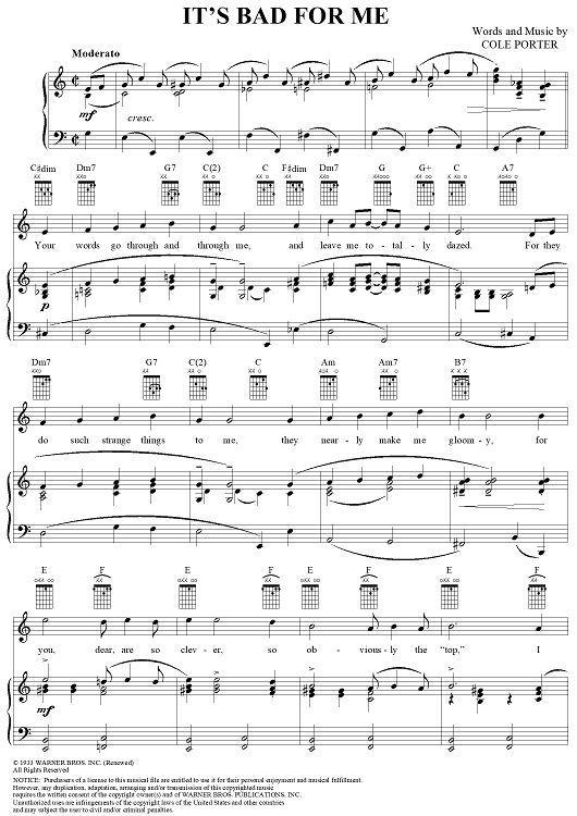 Digital Sheet Music for It's Bad for Me by Cole Porter scored for Piano/Vocal/Chords; id:316511