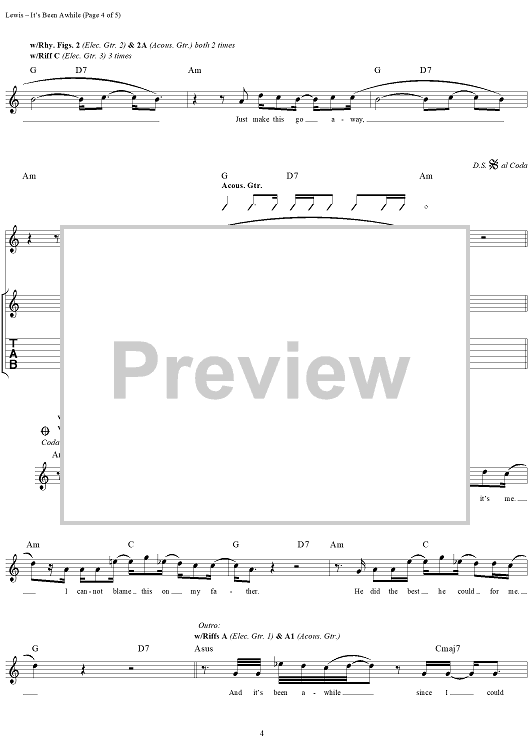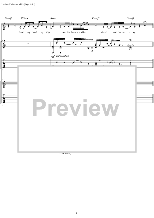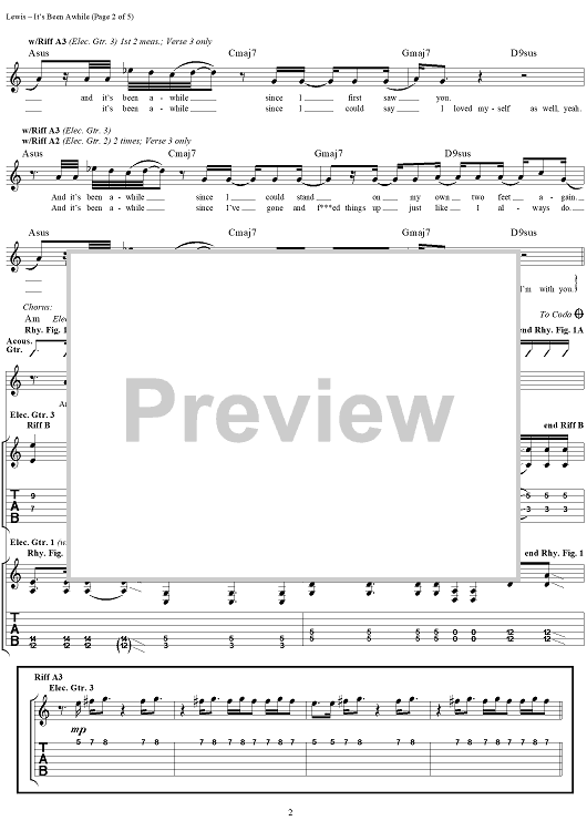 Digital Sheet Music for It's Been Awhile by Aaron Lewis, Michael Mushok, Jonathan Wysocki, John April, Staind scored for Guitar Tab/Vocal; id:284916