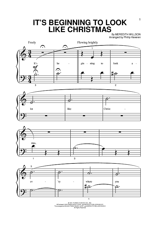 Digital Sheet Music for It's Beginning To Look Like Christmas by Meredith Willson scored for Piano; id:385789