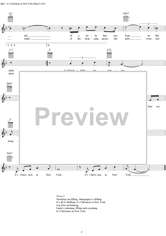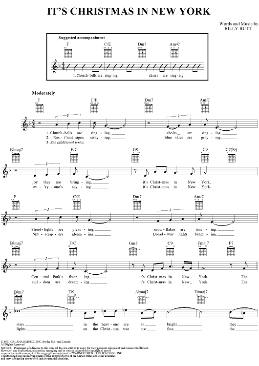 Digital Sheet Music for It's Christmas in New York by Billy Butt scored for Lead Sheet; id:273612