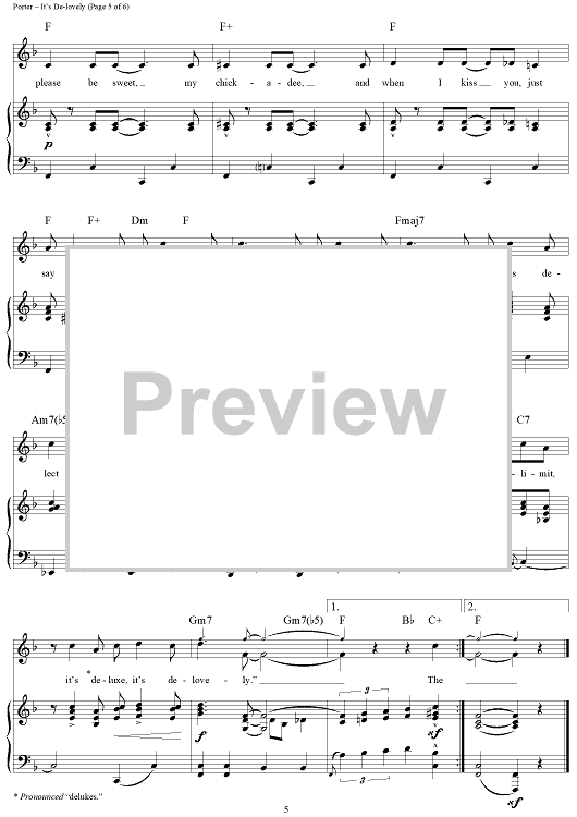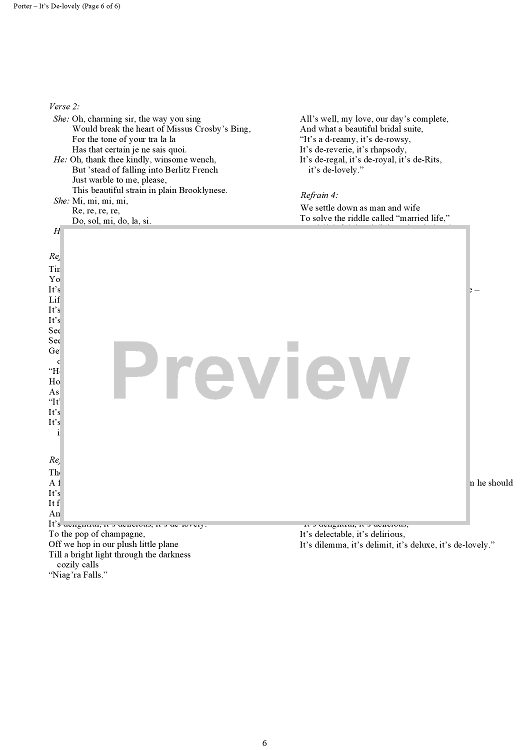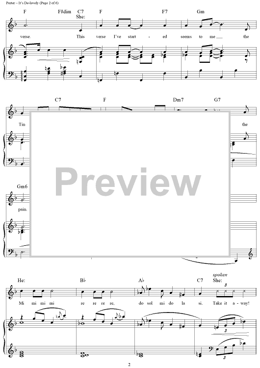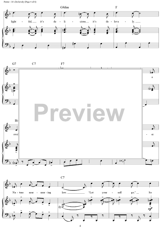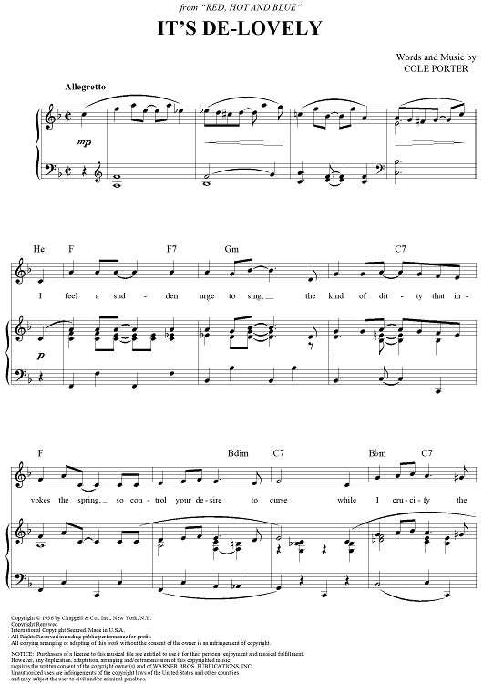 Digital Sheet Music for It's De-Lovely by Cole Porter scored for Piano/Vocal/Chords; id:316503