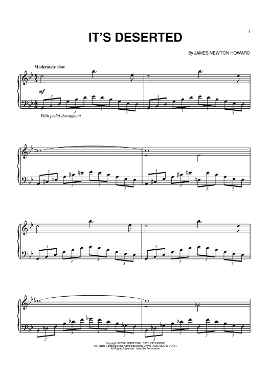 Digital Sheet Music for It's Deserted by James Newton Howard scored for Piano; id:389825