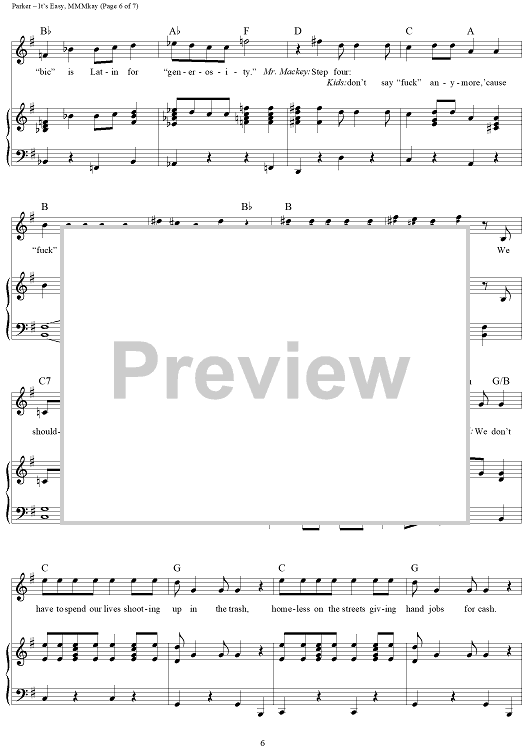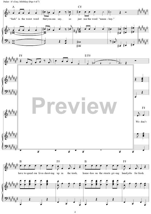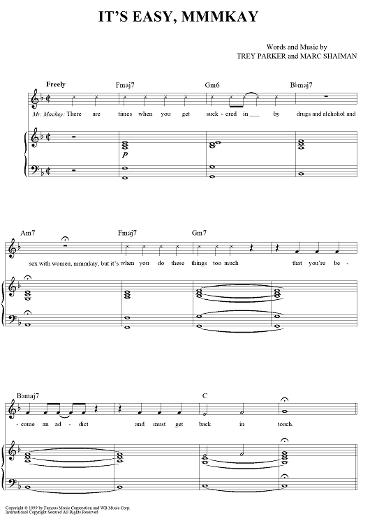 "It's Easy, Mmmkay" Sheet Music by Marc Shaiman