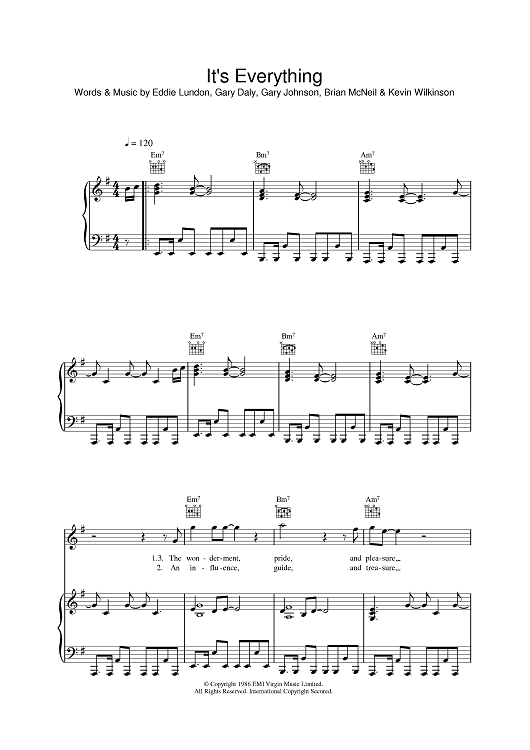 Digital Sheet Music for It's Everything by China Crisis, Gary Daly, Gary Johnson, Eddie Lundon, Brian McNeil, Kevin Wilkinson scored for Piano/Vocal/Chords; id:401199