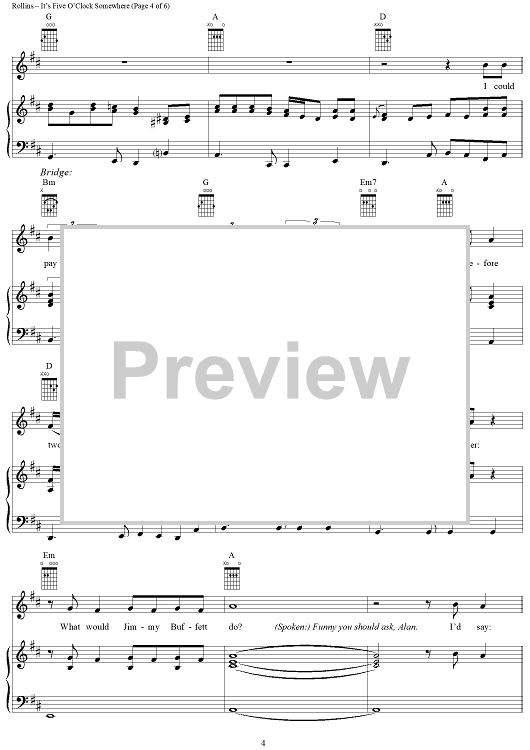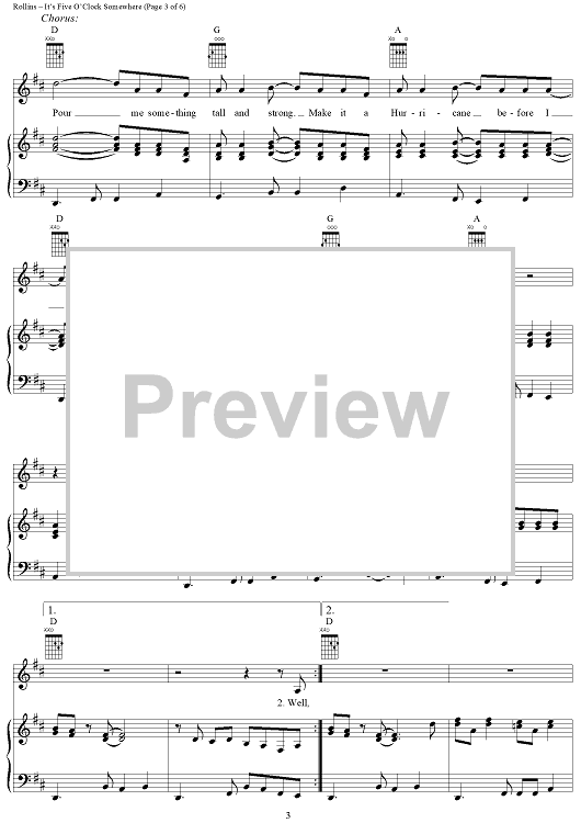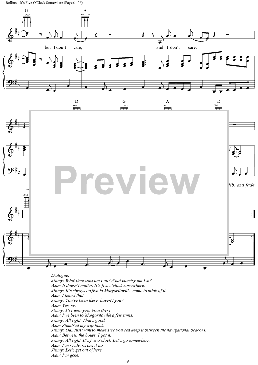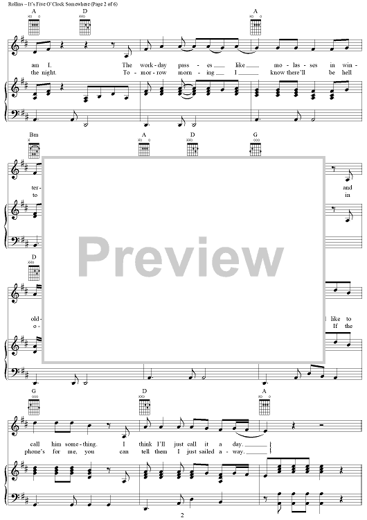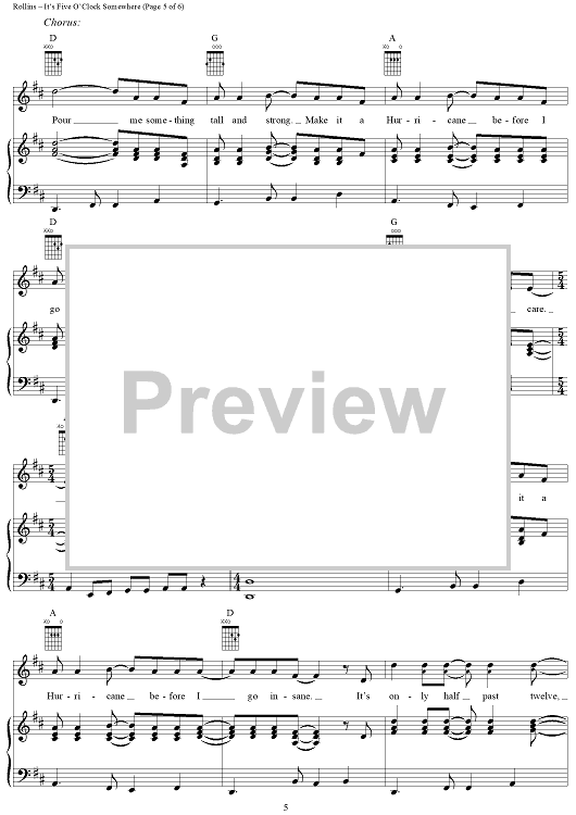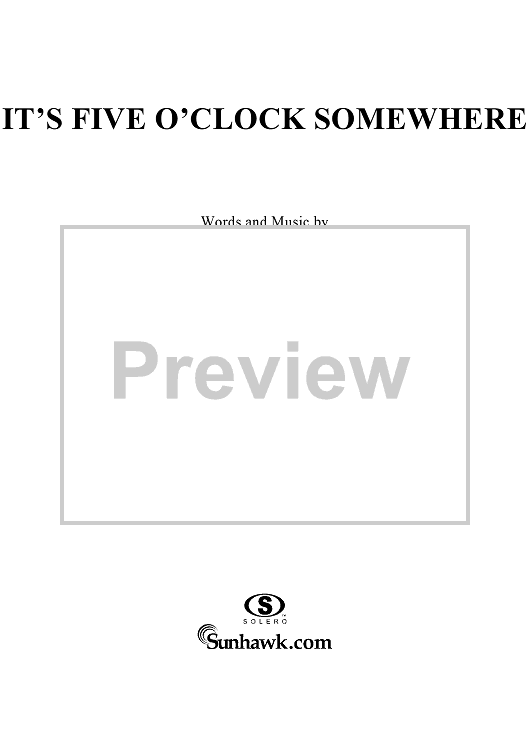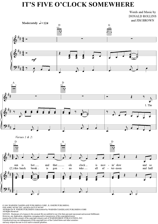 Digital Sheet Music for It's Five O'Clock Somewhere by Jimmy Buffett, Donald Rollins, Jim Brown scored for Piano/Vocal/Chords; id:297344