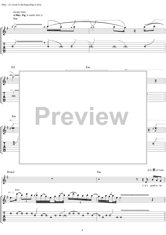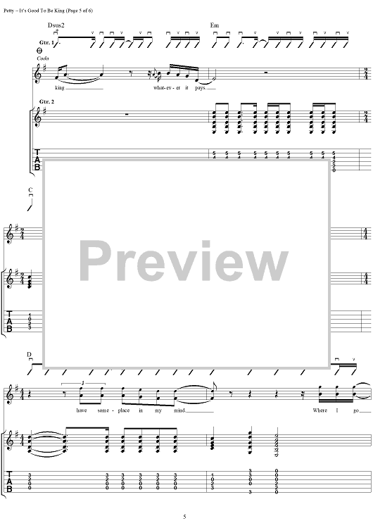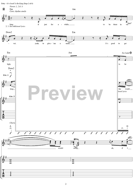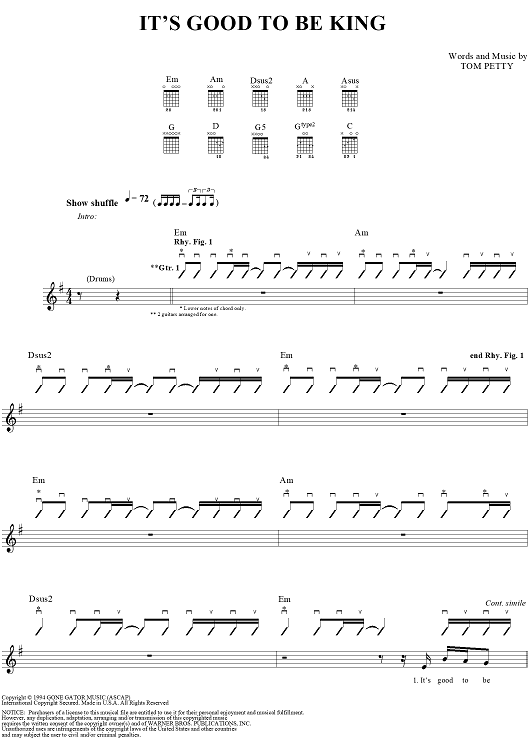 "It's Good To Be King" Sheet Music by Tom Petty
