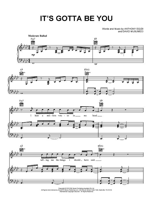 Digital Sheet Music for It's Gotta Be You by Isaiah Firebrace, Anthony Egizii, David Musumeci scored for Piano/Vocal/Chords; id:465092