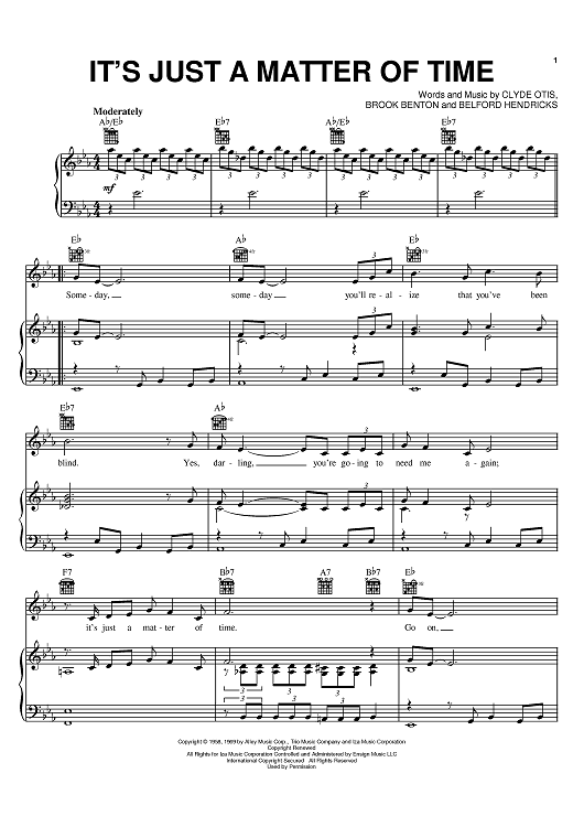 Digital Sheet Music for It's Just A Matter Of Time by Randy Travis, Clyde Otis, Brook Benton, Belford Hendricks, Sonny James scored for Piano/Vocal/Chords; id:383624