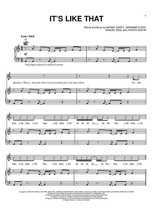 Digital Sheet Music for It's Like That by Mariah Carey, Manuel Seal, Jermaine Dupri, Johnta Austin scored for Piano/Vocal/Chords; id:383073