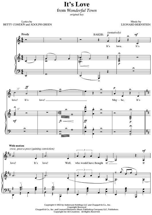 Digital Sheet Music for It's Love by Leonard Bernstein, Betty Comden, Adolph Green scored for Piano/Vocal/Chords; id:469165
