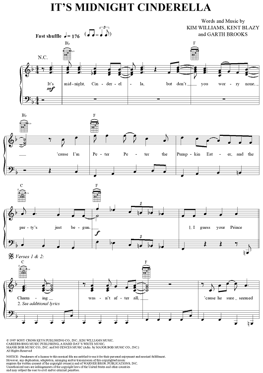 Digital Sheet Music for It's Midnight Cinderella by Garth Brooks, Kent Blazy, Kim Williams scored for Piano/Vocal/Chords; id:220405