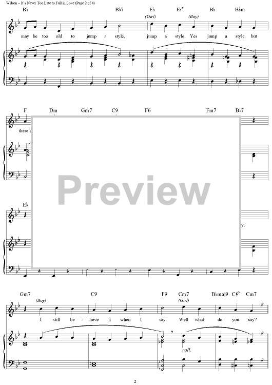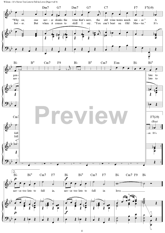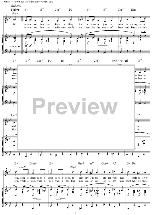 Digital Sheet Music for It's Never Too Late to Fall in Love by Sandy Wilson scored for Piano/Vocal/Chords; id:321066