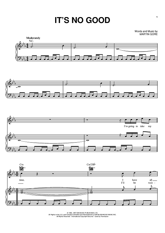 Digital Sheet Music for It's No Good by Martin Gore, Depeche Mode scored for Piano/Vocal/Chords; id:396237