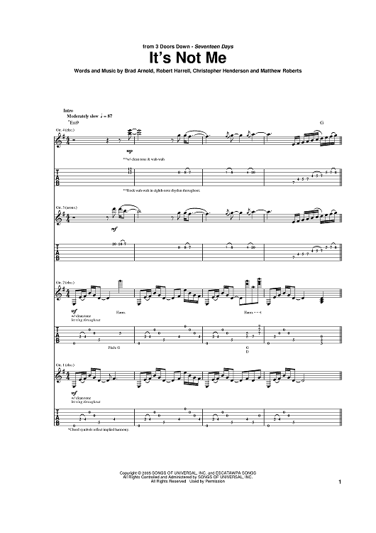 Digital Sheet Music for It's Not Me by 3 Doors Down, Matt Roberts, Brad Arnold, Todd Harrell, Chris Henderson scored for Guitar Tab; id:383760