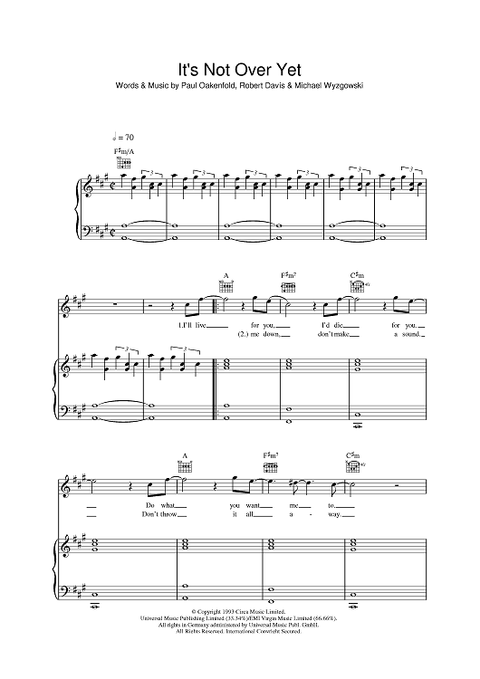 Digital Sheet Music for It's Not Over Yet by Rob Davis, Klaxons, Paul Oakenfold, Michael Wyzgowski scored for Piano/Vocal/Chords; id:401428