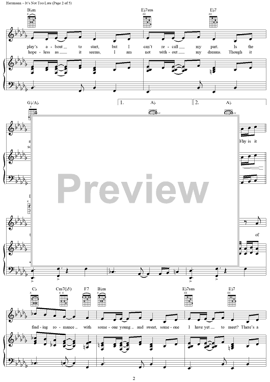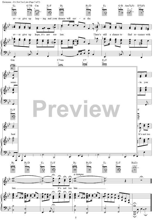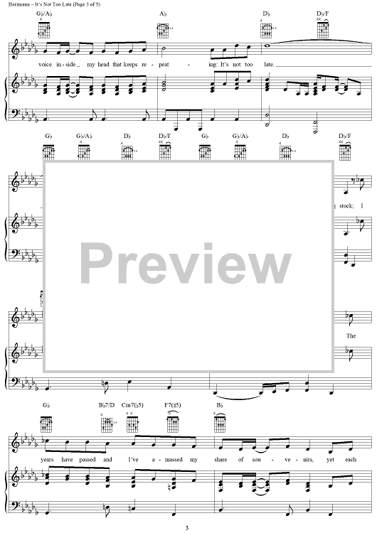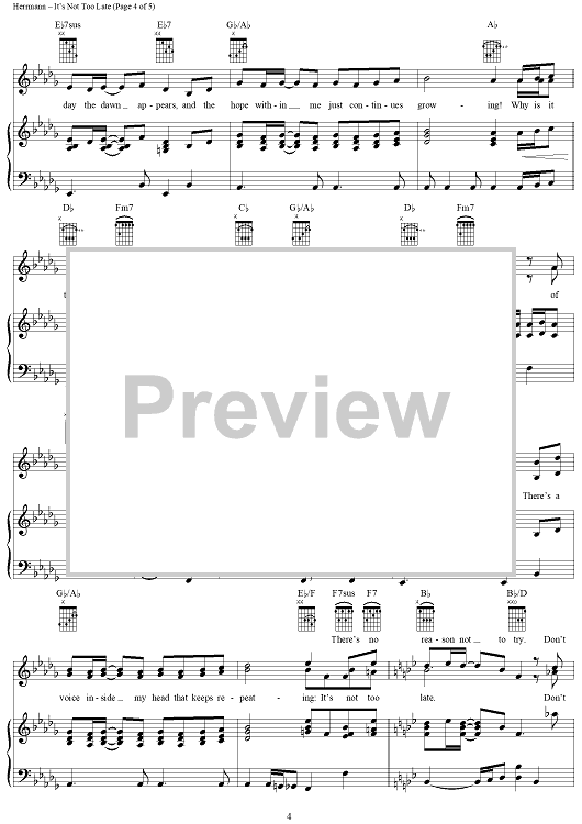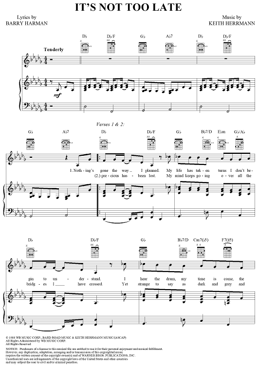 Digital Sheet Music for It's Not Too Late by Keith Herrmann, Barry Harman scored for Piano/Vocal/Chords; id:313614