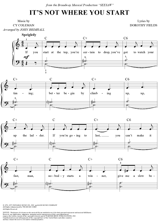 Digital Sheet Music for It's Not Where You Start by Cy Coleman, Dorothy Fields, John Brimhall scored for Easy Piano/Vocal/Chords; id:272338