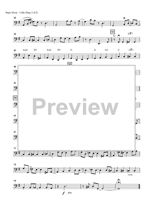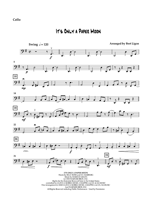 "It's only a Paper Moon - Cello" Sheet Music by Harold Arlen
