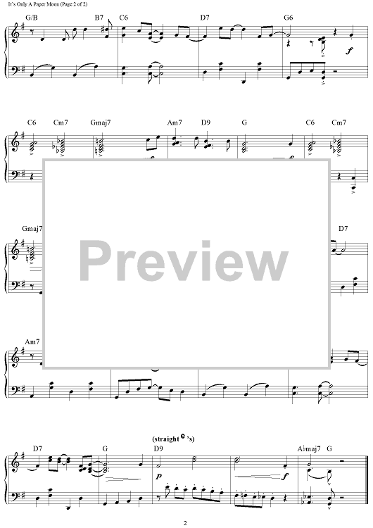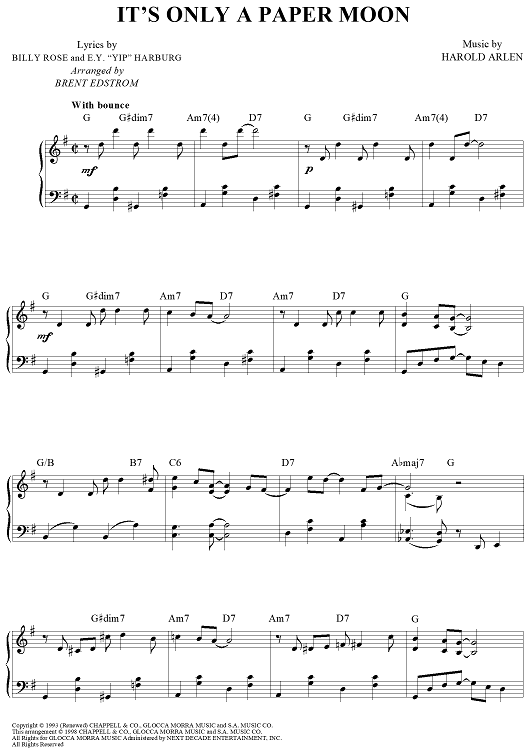 Digital Sheet Music for It's Only A Paper Moon by Harold Arlen, E.Y. "Yip" Harburg, Billy Rose, Brent Edstrom scored for Piano Solo; id:465697