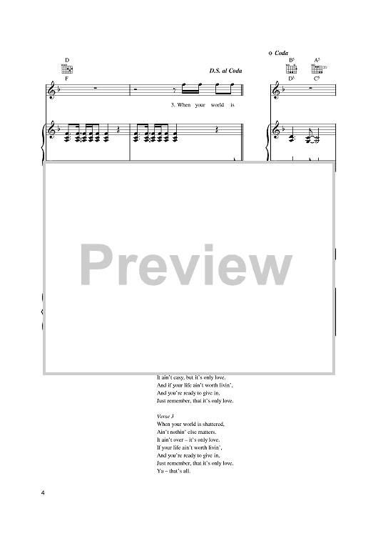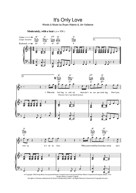 Digital Sheet Music for It's Only Love by Bryan Adams, Tina Turner, Jim Vallance scored for Piano/Vocal/Chords; id:394283