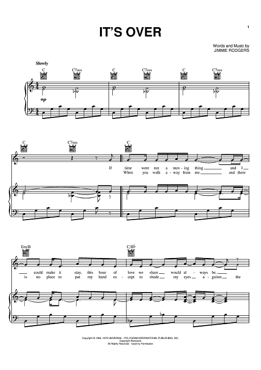 Digital Sheet Music for It's Over by Elvis Presley, Jimmie Rodgers, Eddy Arnold scored for Piano/Vocal/Chords; id:388048