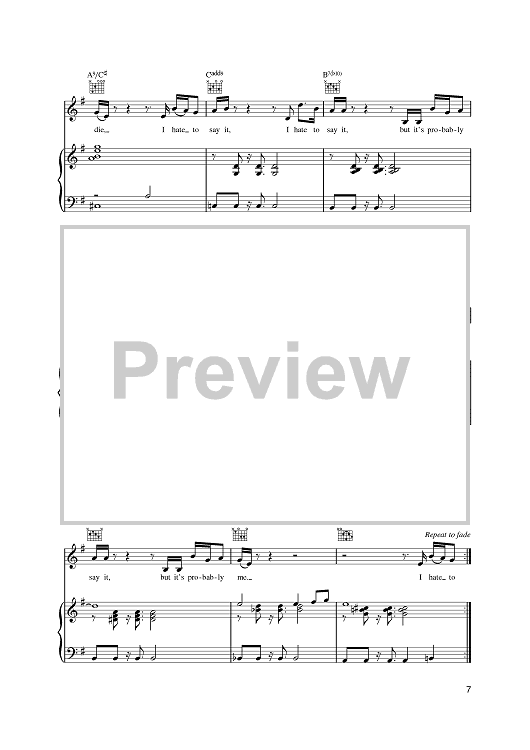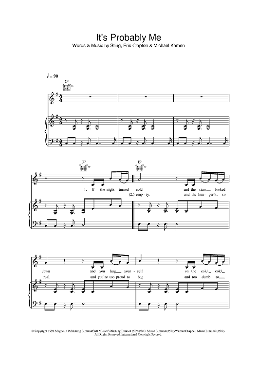 Digital Sheet Music for It's Probably Me by Eric Clapton, Sting, Michael Kamen scored for Piano/Vocal/Chords; id:387691