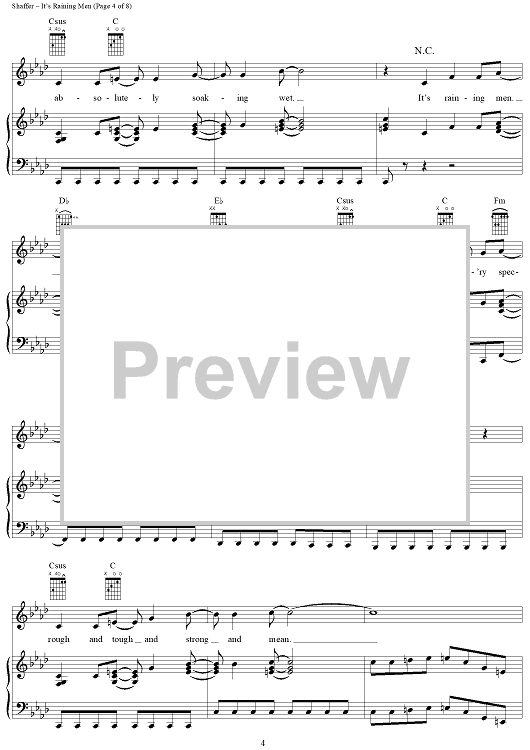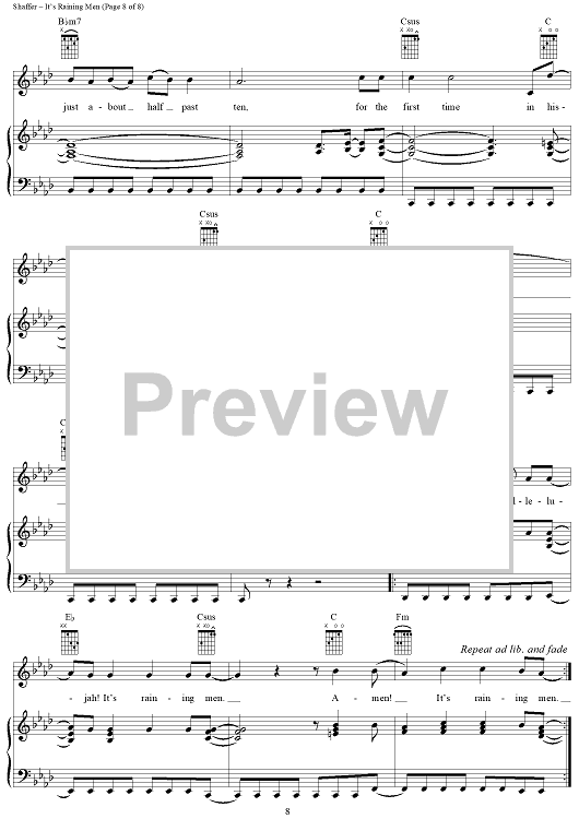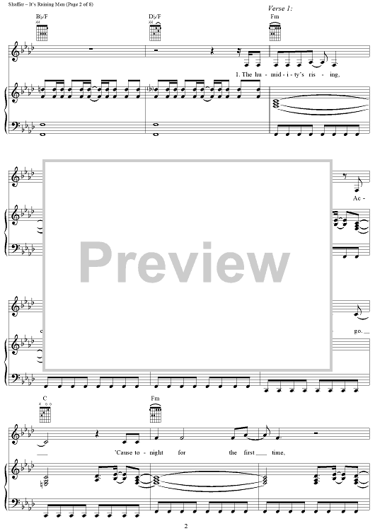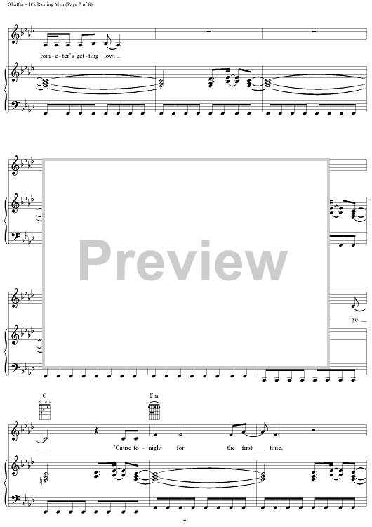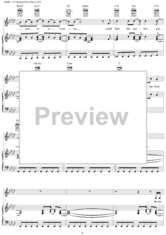 Digital Sheet Music for It's Raining Men by Paul Shaffer, Geri Halliwell, Paul Jabara, The Weather Girls scored for Piano/Vocal/Chords; id:318217