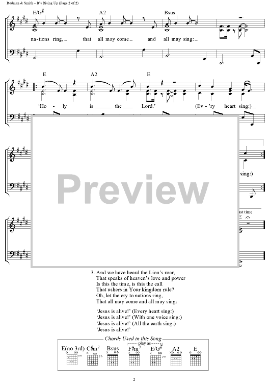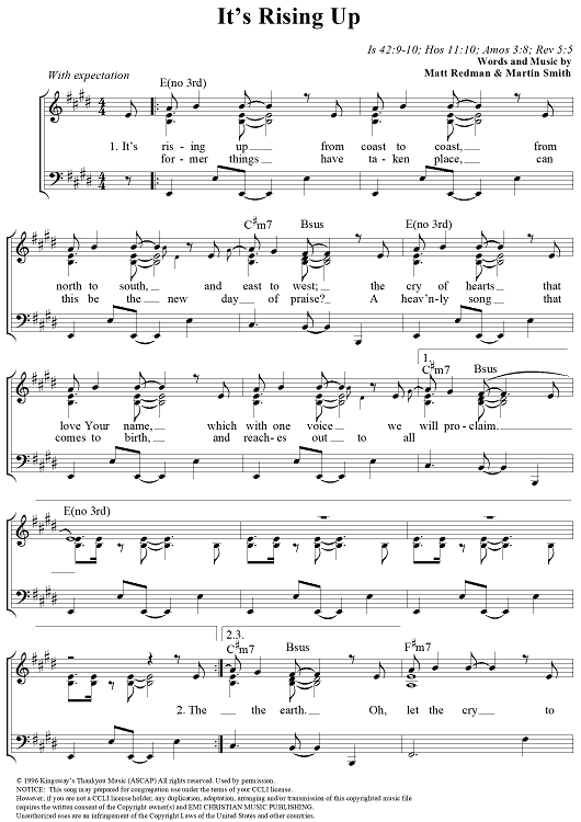 Digital Sheet Music for It's Rising Up by Martin Smith, Matt Redman scored for Piano/Vocal/Chords; id:95727