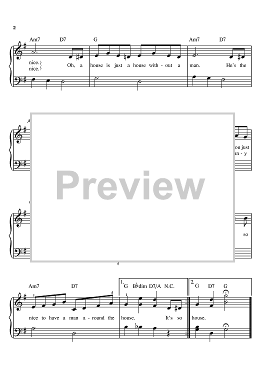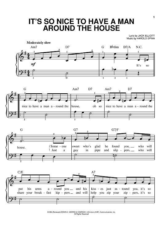 Digital Sheet Music for It's So Nice To Have A Man Around The House by Dinah Shore, Jack Elliott, Harold Spina scored for Easy Piano; id:385717