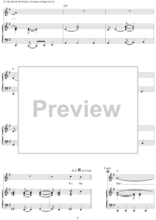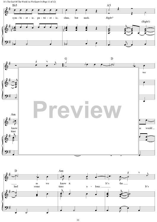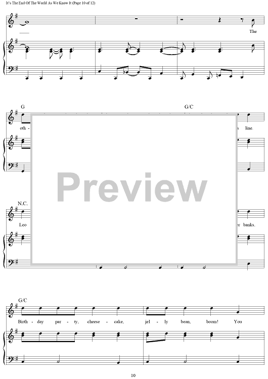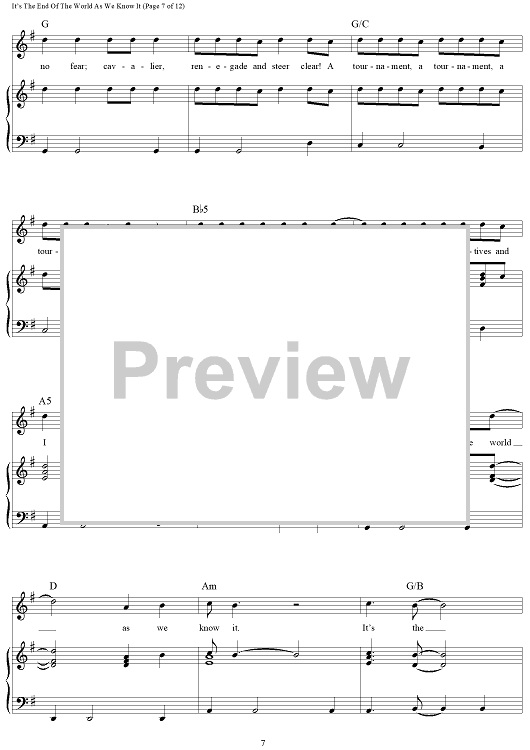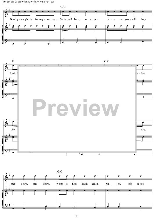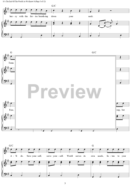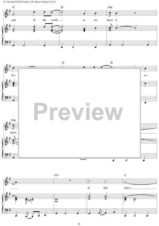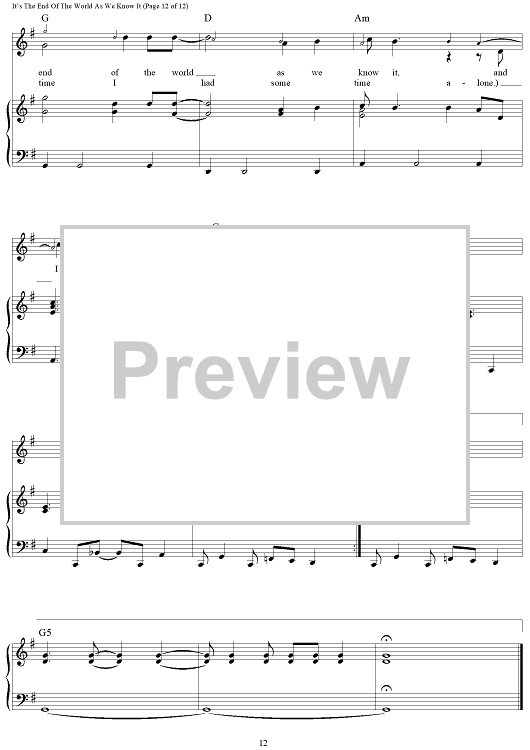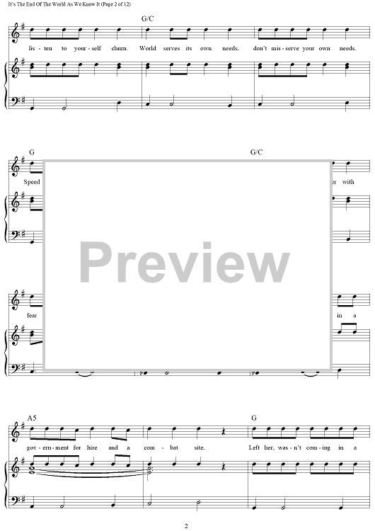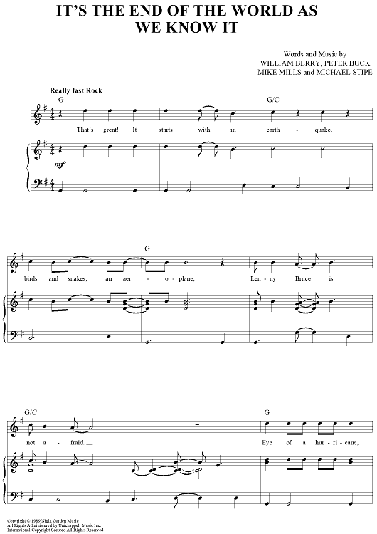 Digital Sheet Music for It's The End Of The World As We Know It by R.E.M., Michael Stipe, Peter Buck, Bill Berry scored for Piano/Vocal/Chords; id:388584
