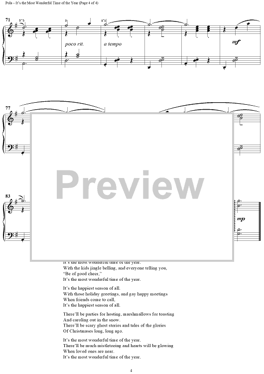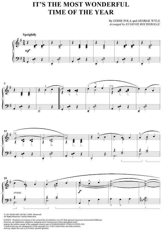 Digital Sheet Music for It's the Most Wonderful Time of the Year by George Wyle, Eddie Pola, Eugénie R. Rocherolle scored for Piano Solo; id:253979