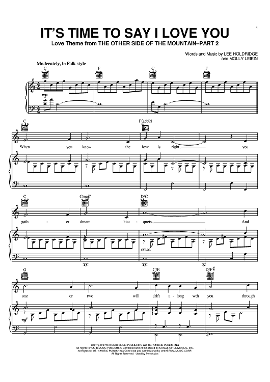 Digital Sheet Music for It's Time To Say I Love You by Lee Holdridge, Molly-Ann Leikin scored for Piano/Vocal/Chords; id:402006